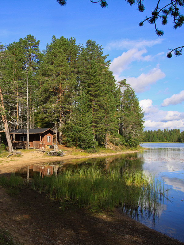 We spend the evening at a superb campsite near one of Philippe’s Sami friends, who allows us to luxuriate in what could well be the world’s most beautiful sauna, perched on a tiny island in an idyllic lake and reached by paddling across a sandy causeway that is mostly covered by water.